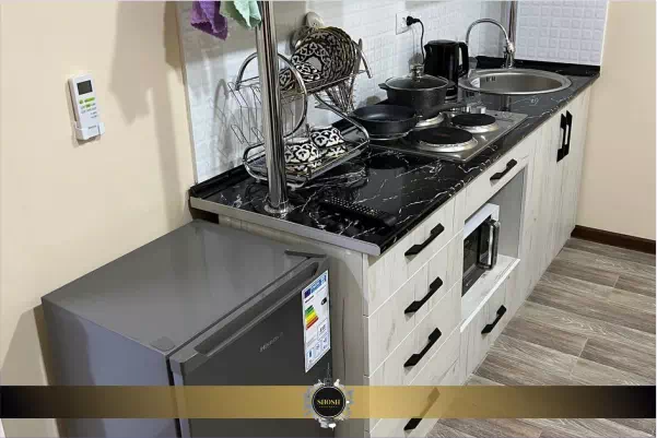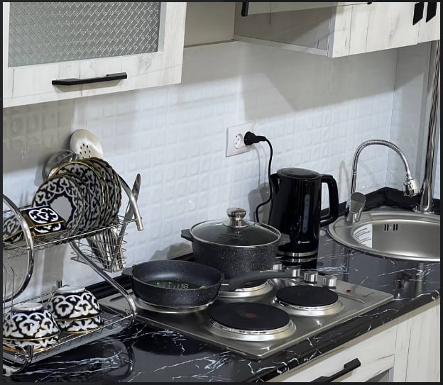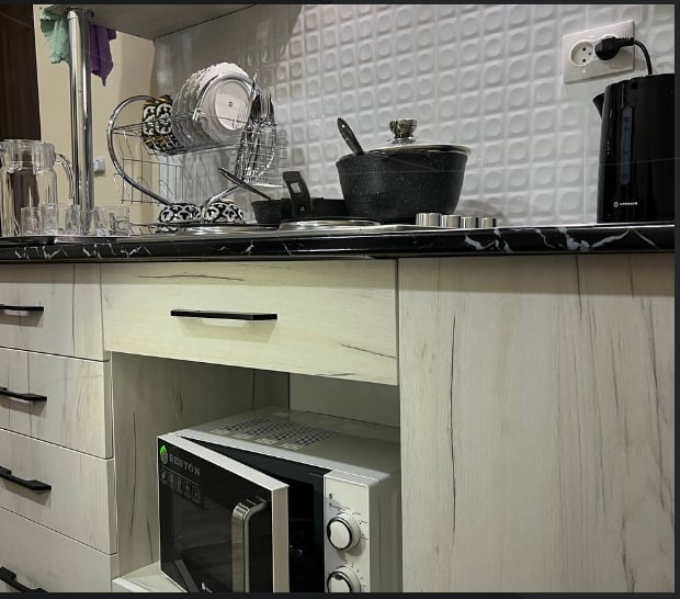 | 1 | Полностью укомплектованная кухня c варочной панелью, вытяжкой, микроволновкой, холодильником и т.д.; |